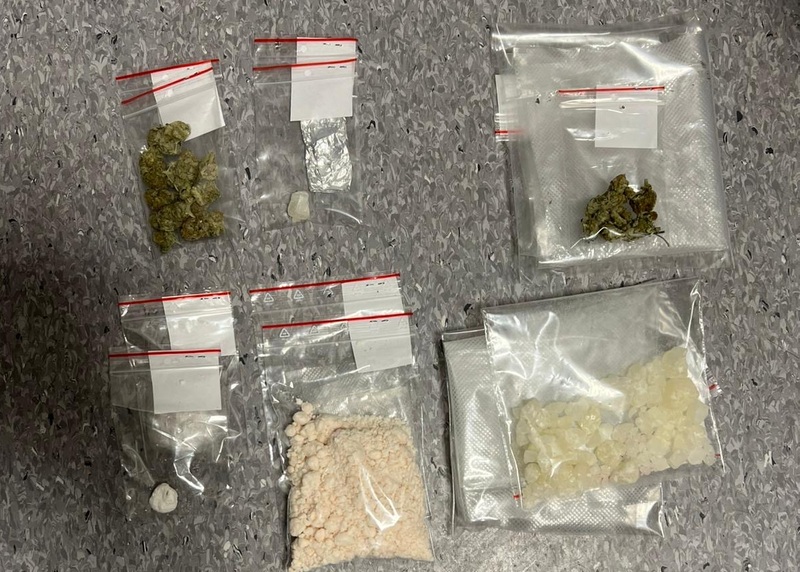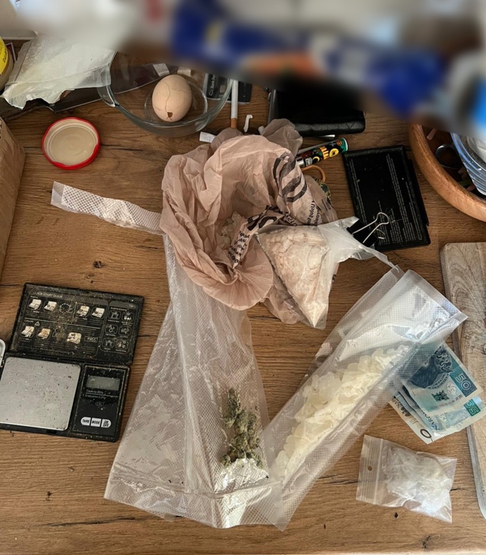Funkcjonariusze zabezpieczyli prawie 10 gramów marihuany, ponad 80 gramów amfetaminy, niewielką ilość kokainy oraz prawie 70 gramów mefedronu. Przy zatrzymanym znajdowała się też niewielka ilość gotówki. Łącznie zabezpieczono kilka różnych substancji odurzających i psychotropowych — co w ocenie policji świadczy o posiadaniu w znacznych ilościach.